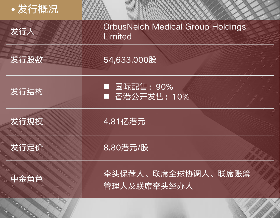 12月23日,业聚医疗集团控股有限公司(OrbusNeich Medical Group Holdings Limited,“业聚医疗”或“公司”,股票代码:6929.HK)正式在香港联交所主板挂牌,完成首次公开发行(以下简称“本次发行”)。本次发行共募集资金约4.81亿港元。中金公司担任本次发行的联席保荐人、整体协调人、联席全球协调人、联席账簿管理人及联席牵头经办人。